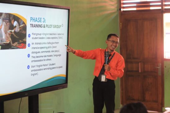 “Dalam pemaparan program tersebut, kedua guru menekankan pentingnya penerapan Bahasa Inggris secara konsisten pada setiap proses pembelajaran. Beberapa langkah yang menjadi instruksi utama diantaranya membuka pelajaran menggunakan Bahasa Inggris, memimpin doa dalam bahasa Inggris, memberi salam, melakukan absensi, serta menutup materi pembelajaran menggunakan bahasa Inggris,” ungkapnya.